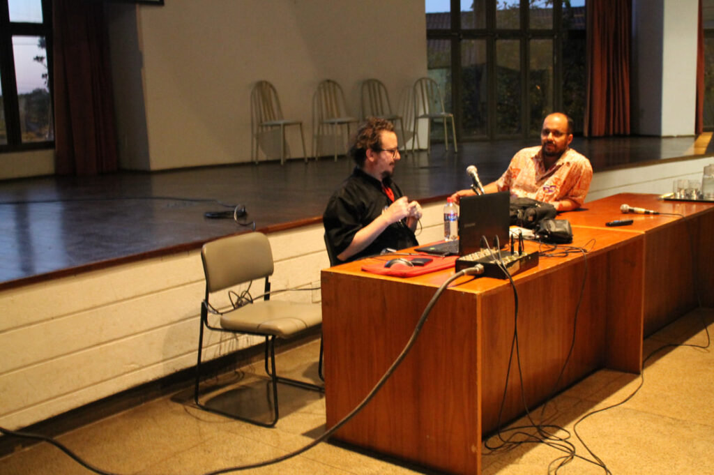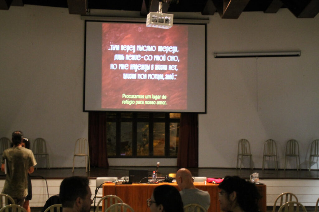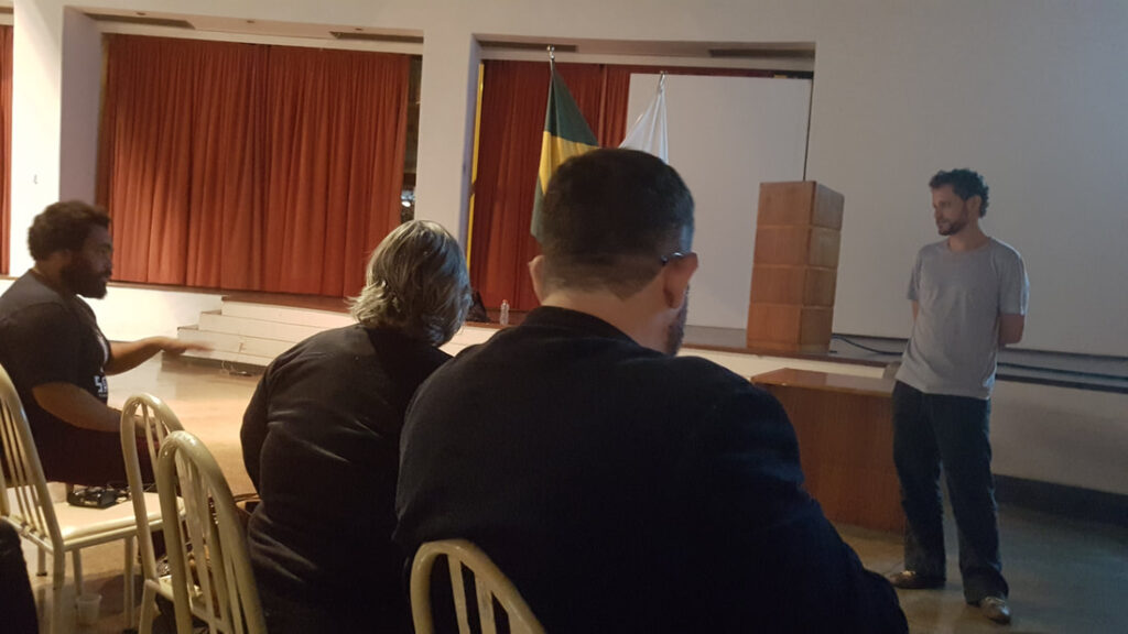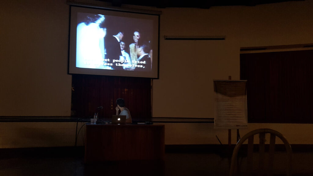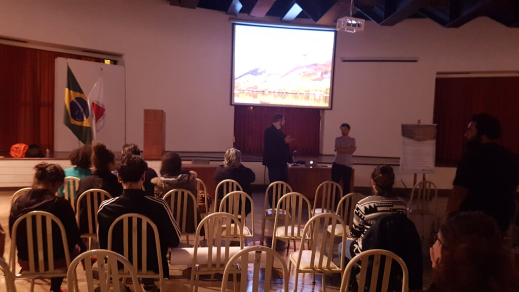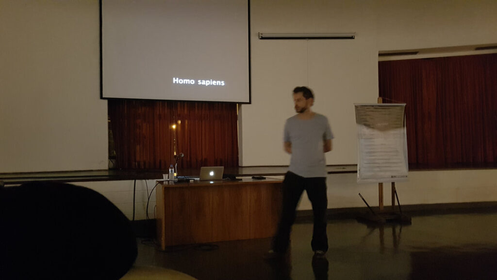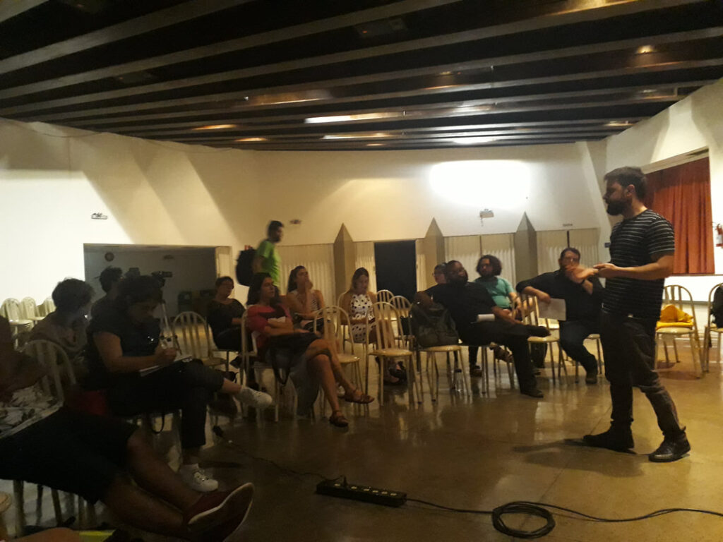 Nossa palestra com professor e artista André Hallack discutiu as semelhanças e distanciamentos entre vídeo-documentário e videoarte. O palestrante expôs um pouco de sua trajetória dentro da produtora Trem Chic VideoLab e falou sobre o mercado local para produção de cinema e de novas perspectivas.