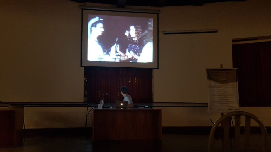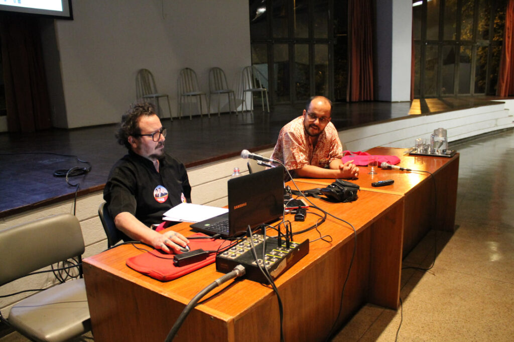 Na palestra , os curadores Joacélio Batista e Carlos Magno Rodrigues expuseram um panorama da produção local e nacional no campo das artes do vídeo. Problematizando o gênero, que ao transitar entre o cinema e outras linguagens, põe em questão o seu espaço e consumo, exibiram obras, entre autorais, inéditas e clássicas, trazendo ainda discussões em torno dos novos canais de veiculação e mídia, como o youtube e plataformas digitais de livre acesso.