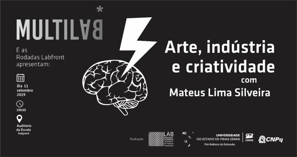 O Multilab e as Rodadas Lab|Front trouxe para o público a palestra Arte, indústria e criatividade, ministrada por Matheus Lima Silveira, responsável por Inovação e Conectividade na Diretoria de Produto da FCA (Fiat Chrysler Automóveis). Foram levantadas várias discussões acerca do papel do artista e designer na atuação de industrias fabris.